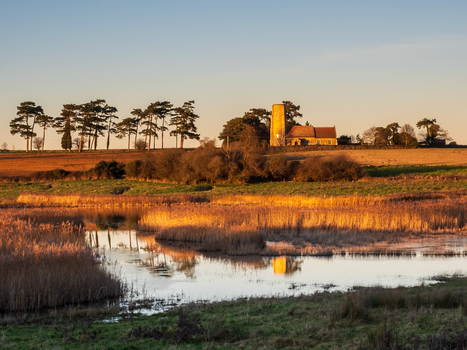 If you walk upstream along the river the path will present a number of views up to the church across the water meadow (The parish church of All Saints is one of 38 surviving round-tower churches in Suffolk).
